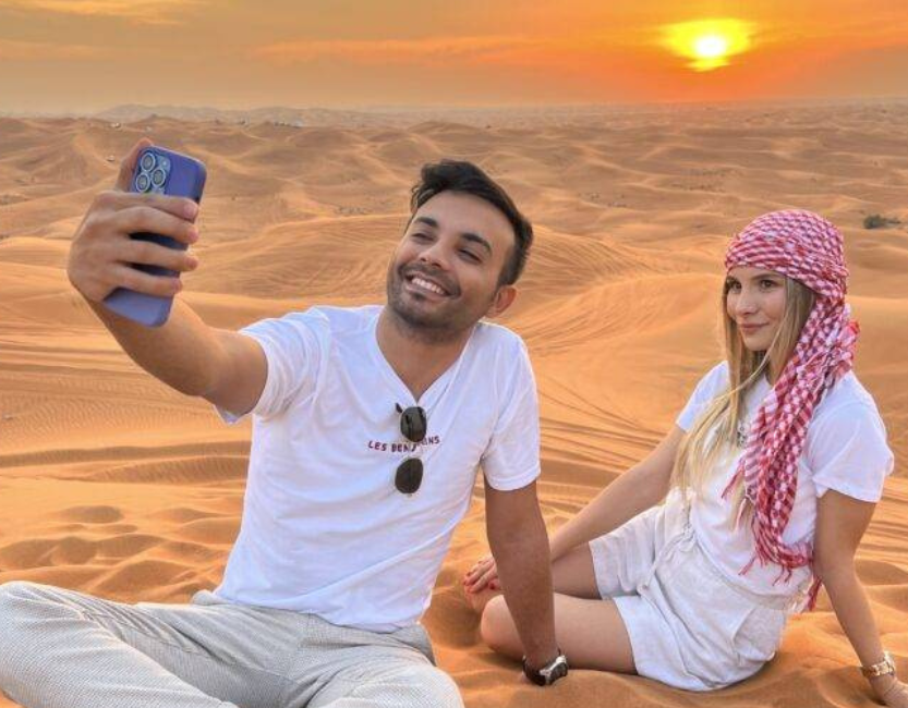 - 20–30 min dune bashing at Lahbab Red Dunes